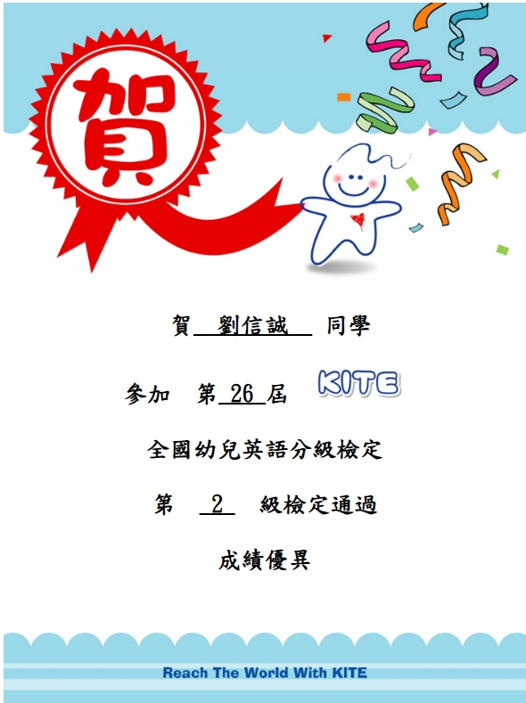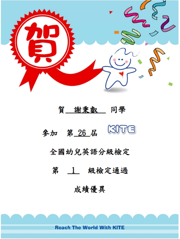 2023年第26屆KITE 全國幼兒英語分級檢定